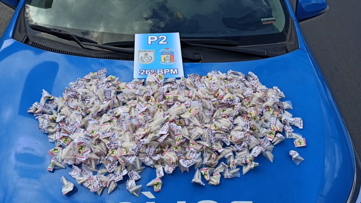 Assim que realizaram buscas no local os agentes encontraram 1.200 cápsulas de cocaína dentro de uma sacola. Os entorpecentes tinham a inscrição “Complexo do Indaiá pó de 10”. O material foi apreendido e levado para a 105ª Delegacia de Polícia, no Retiro, onde o caso foi registrado.