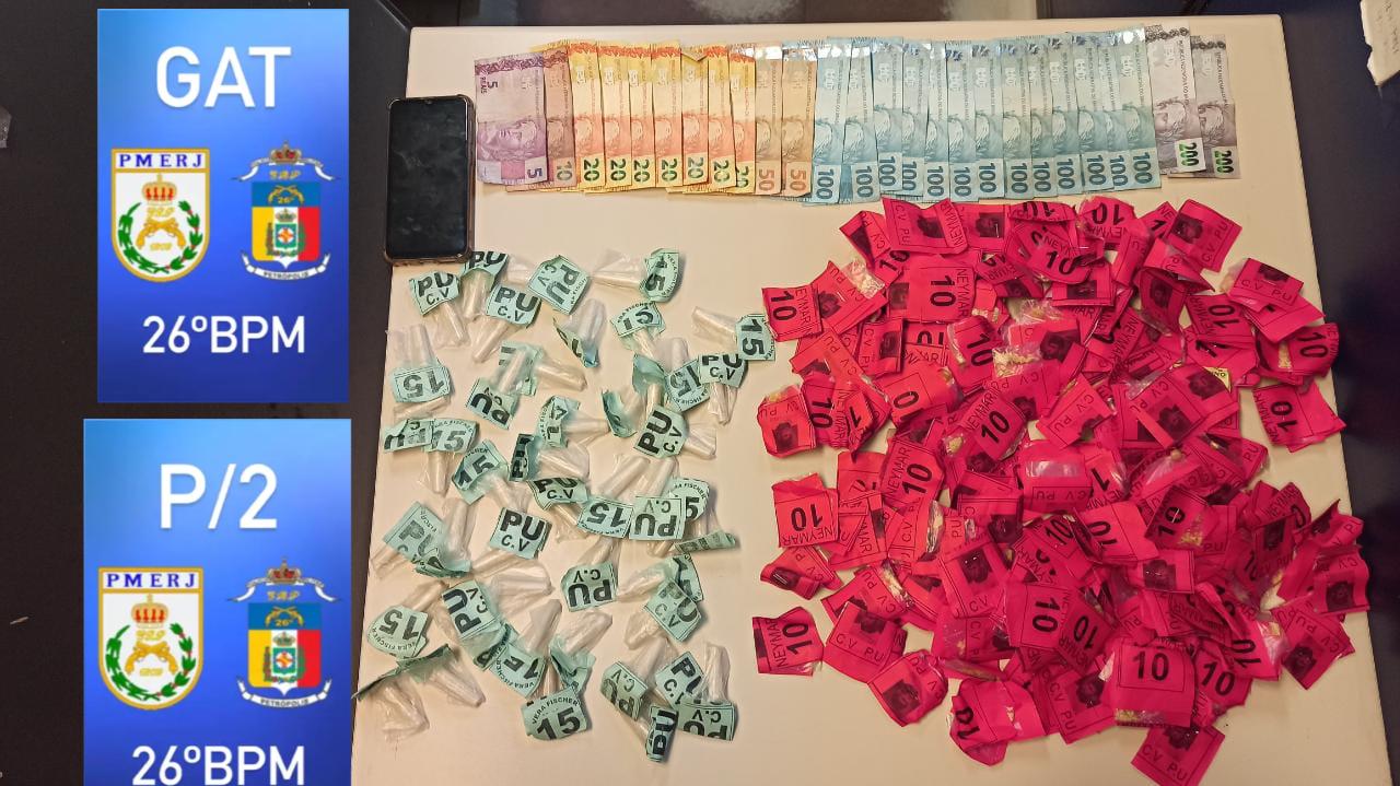 A Polícia Militar recebeu denúncias anônimas na quarta-feira (30) sobre um homem, de 37 anos, que estava vendendo drogas na própria casa, na Rua 28 de Abril, em Madame Machado. Após a revista no local foram encontrados 196 (185g) papelotes de crack e 44 (88g) cápsulas de cocaína, que estavam escondidas no telhado da residência. Além disso, R$ 1.940 em dinheiro foram achados dentro do quarto do acusado. O homem assumiu ser o dono dos entorpecentes e foi levado para a 106ª Delegacia de Polícia, em Itaipava, onde foi autuado por tráfico de drogas e permaneceu preso.