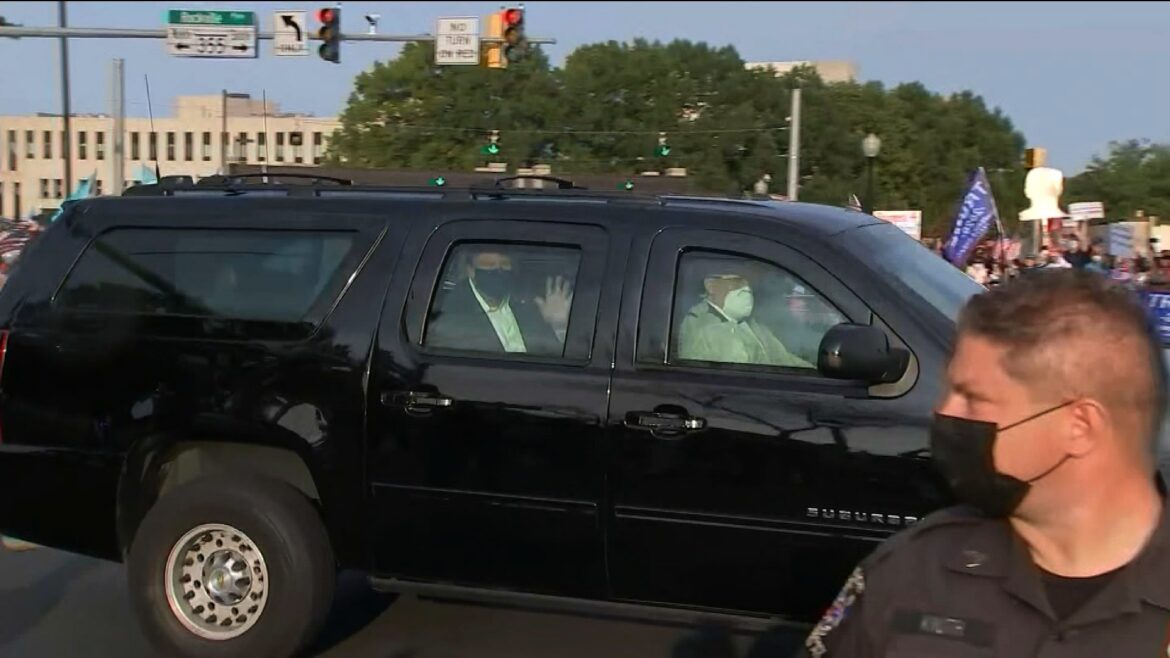 O presidente dos Estados Unidos, Donald Trump, voltou para hospital em que está internado, após sair rapidamente, na tarde deste domingo (4), para cumprimentar os apoiadores que estão do lado de fora.