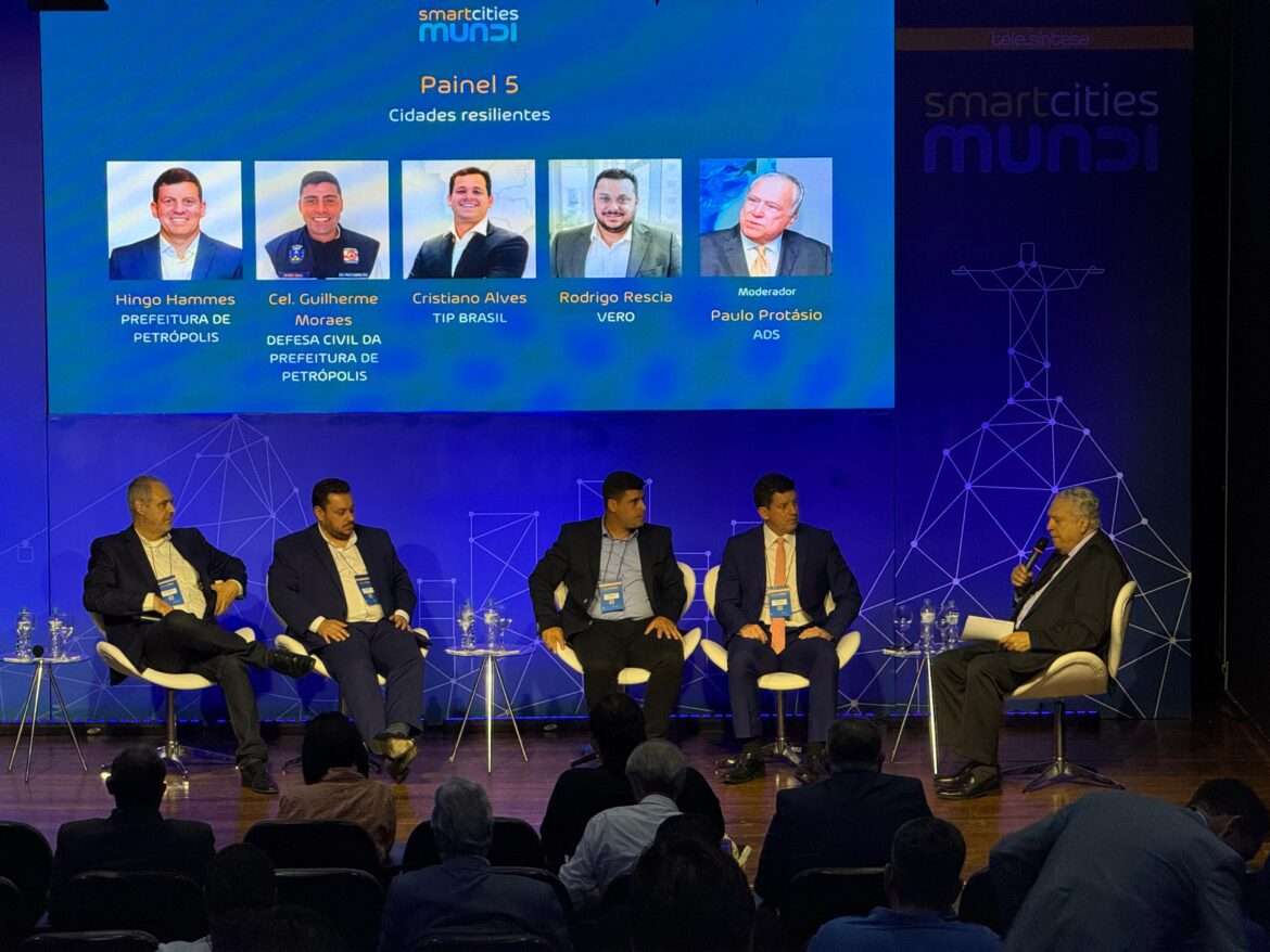 O prefeito Hingo Hammes e o secretário de Proteção e Defesa Civil, Guilherme Moraes, participaram na quarta-feira (28/05) na cidade do Rio de Janeiro, do Smart Cities Mundi 2025, um dos principais eventos do país voltados ao debate sobre cidades inteligentes. As ações de prevenção para tornar Petrópolis mais resiliente com o aprimoramento das tecnologias foi o assunto abordado pelo prefeito em um dos painéis do evento.
