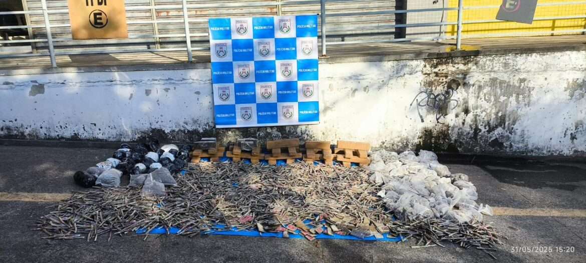 As drogas foram localizadas pelos cães farejadores escondidas em um terreno baldio, na localidade da Rua Dionéia. Também foram apreendidos quatro fuzis, duas pistolas, um revólver, um fuzil de airsoft e munição durante a operação. Um homem com mandado de prisão em aberto foi preso.