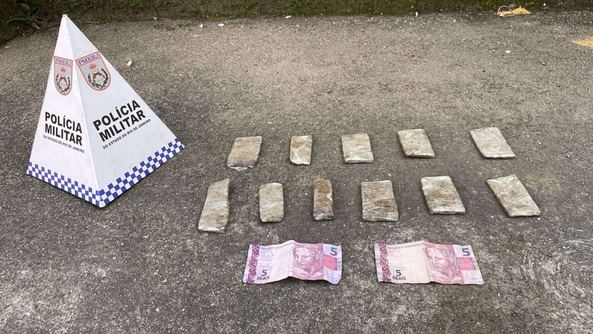 Dez tabletes de maconha, e R$ 10 em espécie, foram apreendidos por agentes da Polícia Militar, na manhã deste sábado (31), no bairro Sargento Boening.