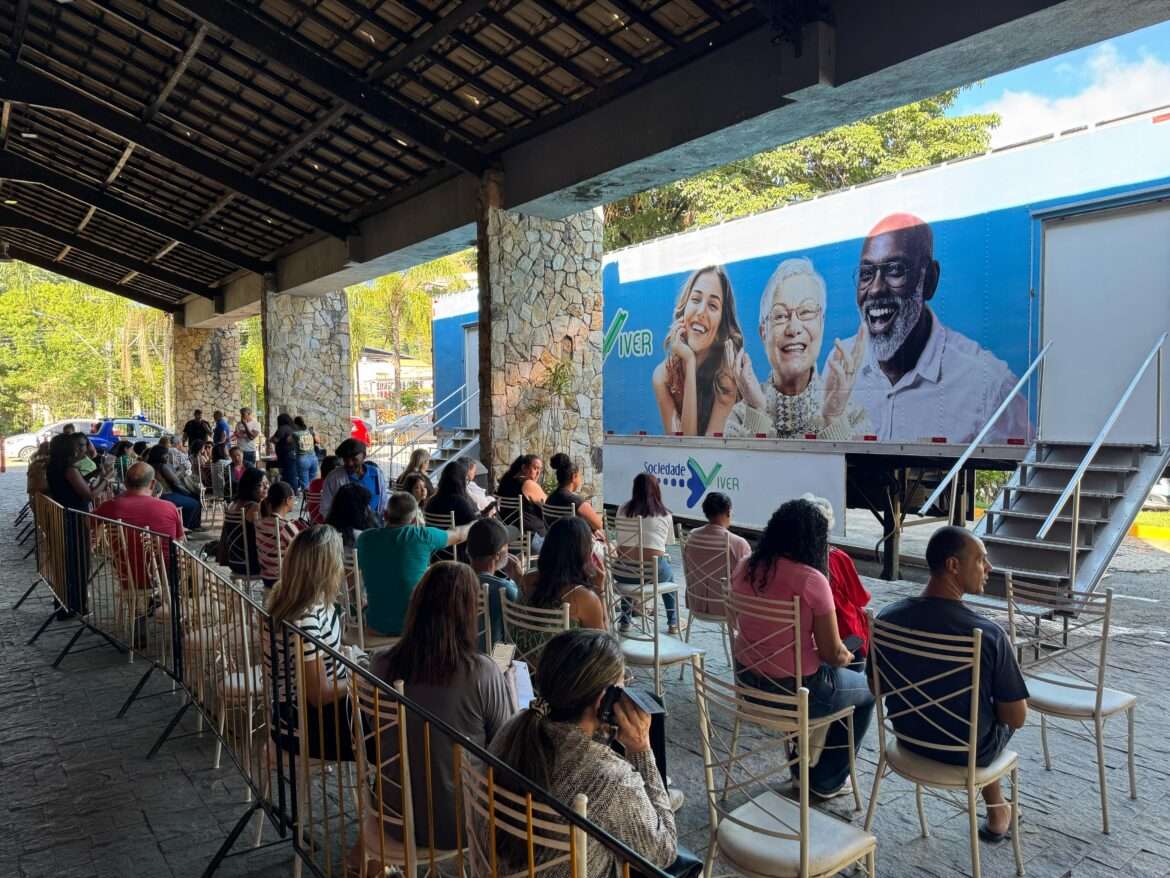 A carreta da saúde no Parque Municipal Prefeito Paulo Rattes, em Itaipava, sengue atendendo pacientes que precisam de exames de ultrassonografia. O mutirão, que já garantiu 3.717 exames desde o início do ano, retornou nesta quinta-feira (12/06) e segue até domingo (15/06). São exames de ultrassonografia nas modalidades tireoide, mama, abdômen total e transvaginal.