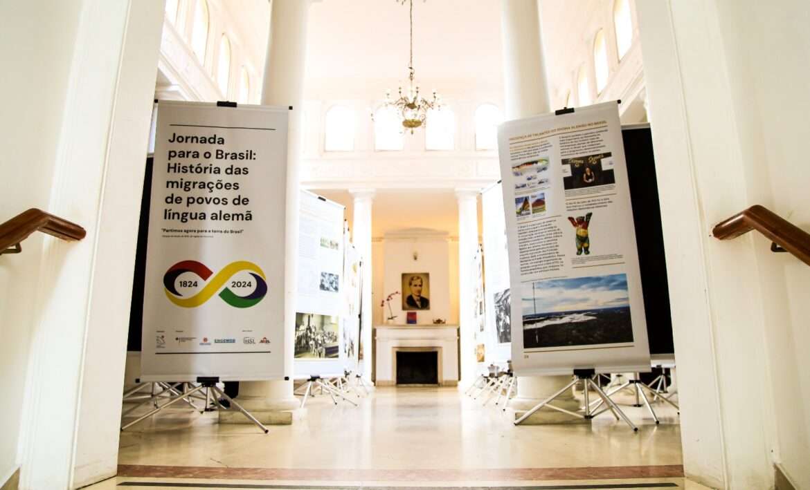 A exposição didática celebra os 200 anos da imigração de povos de língua alemã para o Brasil e está sendo apresentada pelo Instituto Martius-Staden de São Paulo, em parceria com as representações diplomáticas da Alemanha e a Fundação Visconde de Porto Seguro.