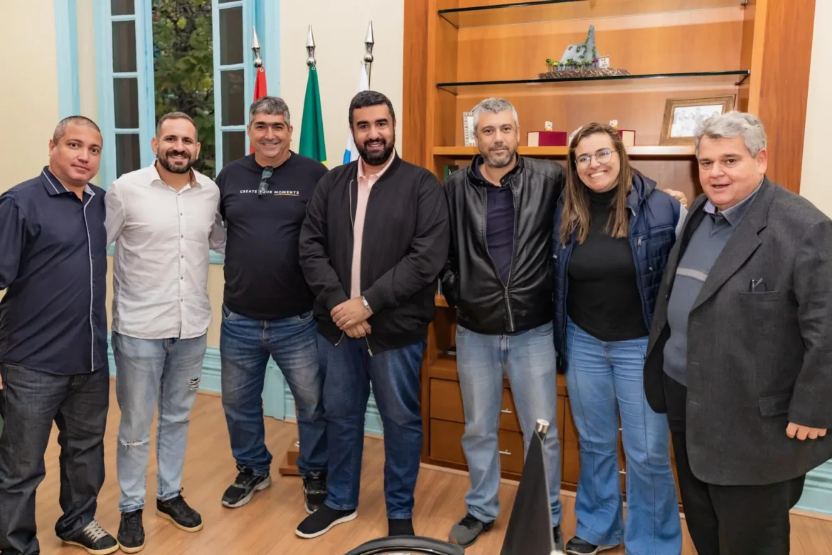 Na última terça-feira (15), o prefeito, Leonardo Vasconcellos, recebeu em seu gabinete o representante do Clube Portuguesa, Hossain Felipe, para uma reunião estratégica com foco no fortalecimento do esporte no município. Também participaram do encontro o Subsecretário de Esporte, José Carlos Pedra (Kaká), a Coordenadora de Esportes, Gisele Fernandes e o Secretário de Governo, André Muniz.