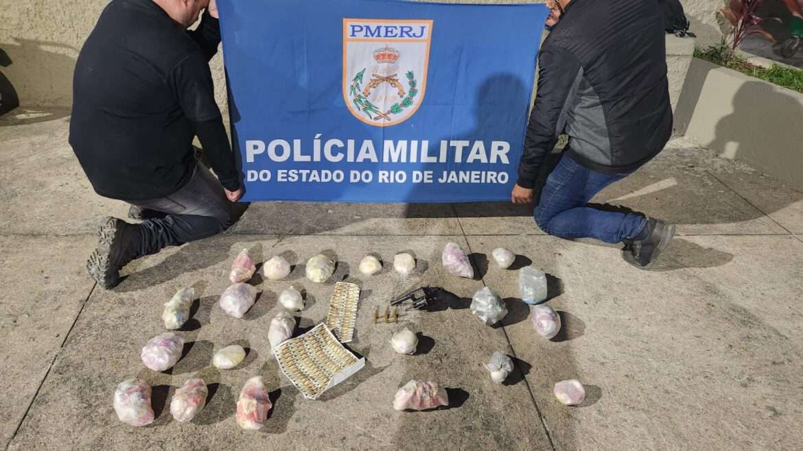 1000 pedras de crack, 720 cápsulas de cocaína, 162 tabletes de maconha, 37 frascos de loló, além de um revólver calibre 38 com 06 munições, foram apreendidos por policiais militares do 26° BPM, em conjunto com policiais civis da 106ª DP (Itaipava), na noite desta quinta-feira (17), na rua Sabará, no Distrito da Posse.