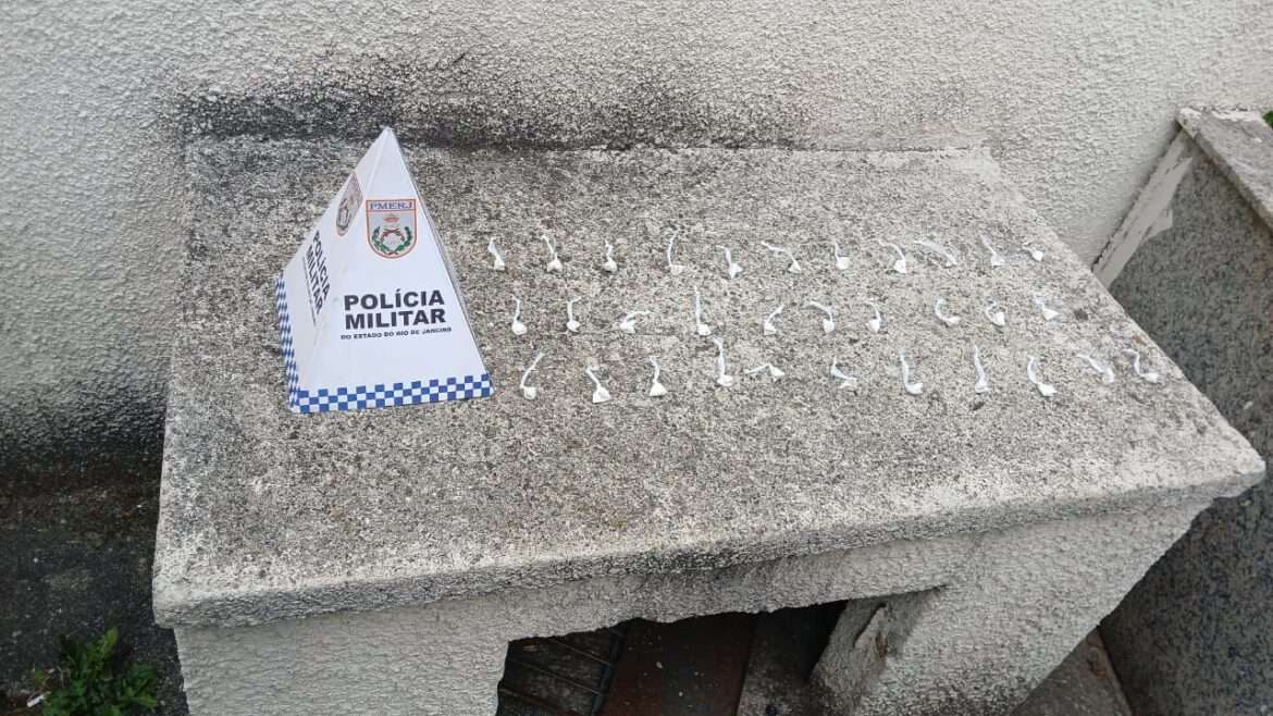 32 sacolés de cocaína, foram apreendidos por nossos policiais, no fim da tarde deste domingo (10), na localidade conhecida como Cocotá, no bairro Fazenda Inglesa.