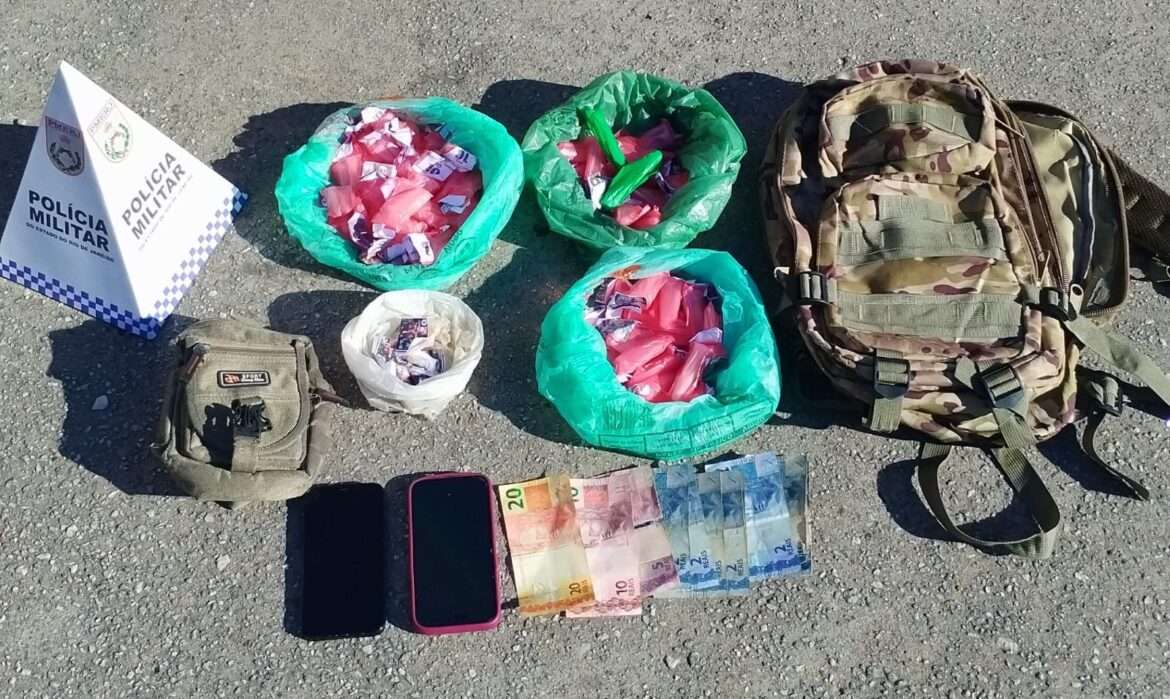 Com eles, nossos agentes encontraram 98 cápsulas de cocaína, 06 pedras de Crack, dois celulares, além de 51 reais em dinheiro.