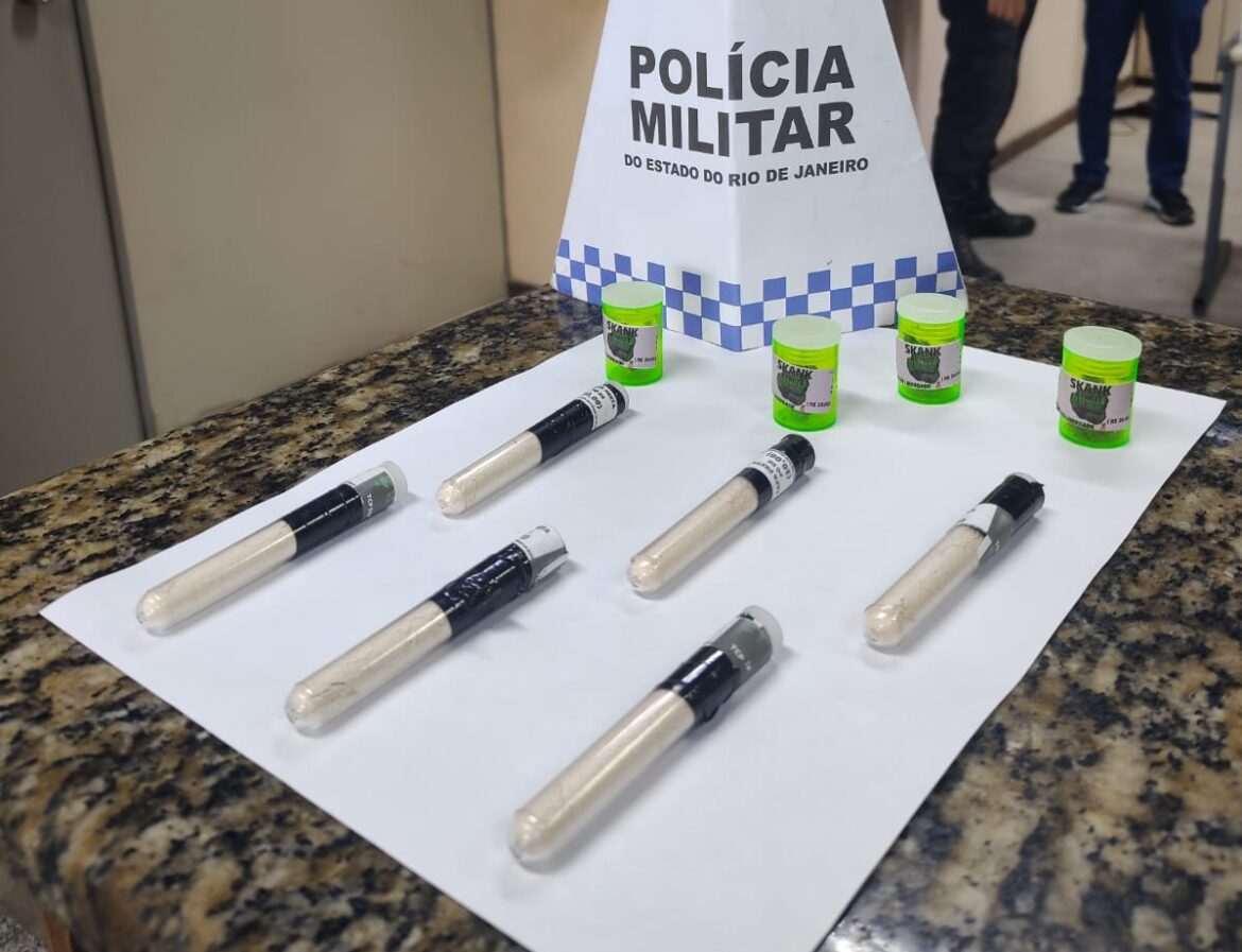 Policiais Militares do 38º Batalhão apreenderam drogas na Rua Valdomiro Alves, no bairro Santa Josefa, em Paraíba do Sul, na manhã deste sábado, 23. Os agentes rrealizavam um patrulhamento na localicade, quando tiveram a atenção voltada para um indivíduo em atitude suspeita próximo à linha do trem.