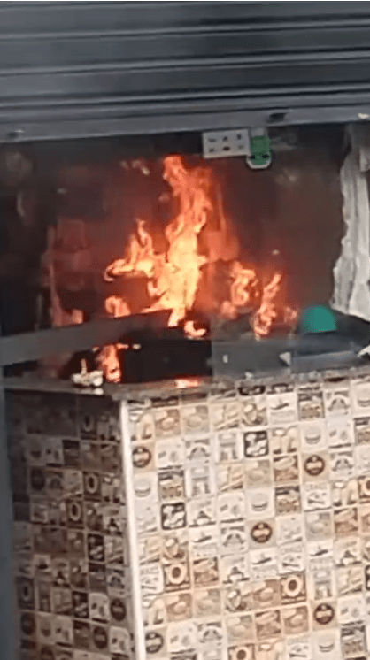 O corpo de Bombeiros foi acionado, mas funcionários de um estabelecimento ao lado, conseguiram controlar as chamas até a chegada dos militares.
