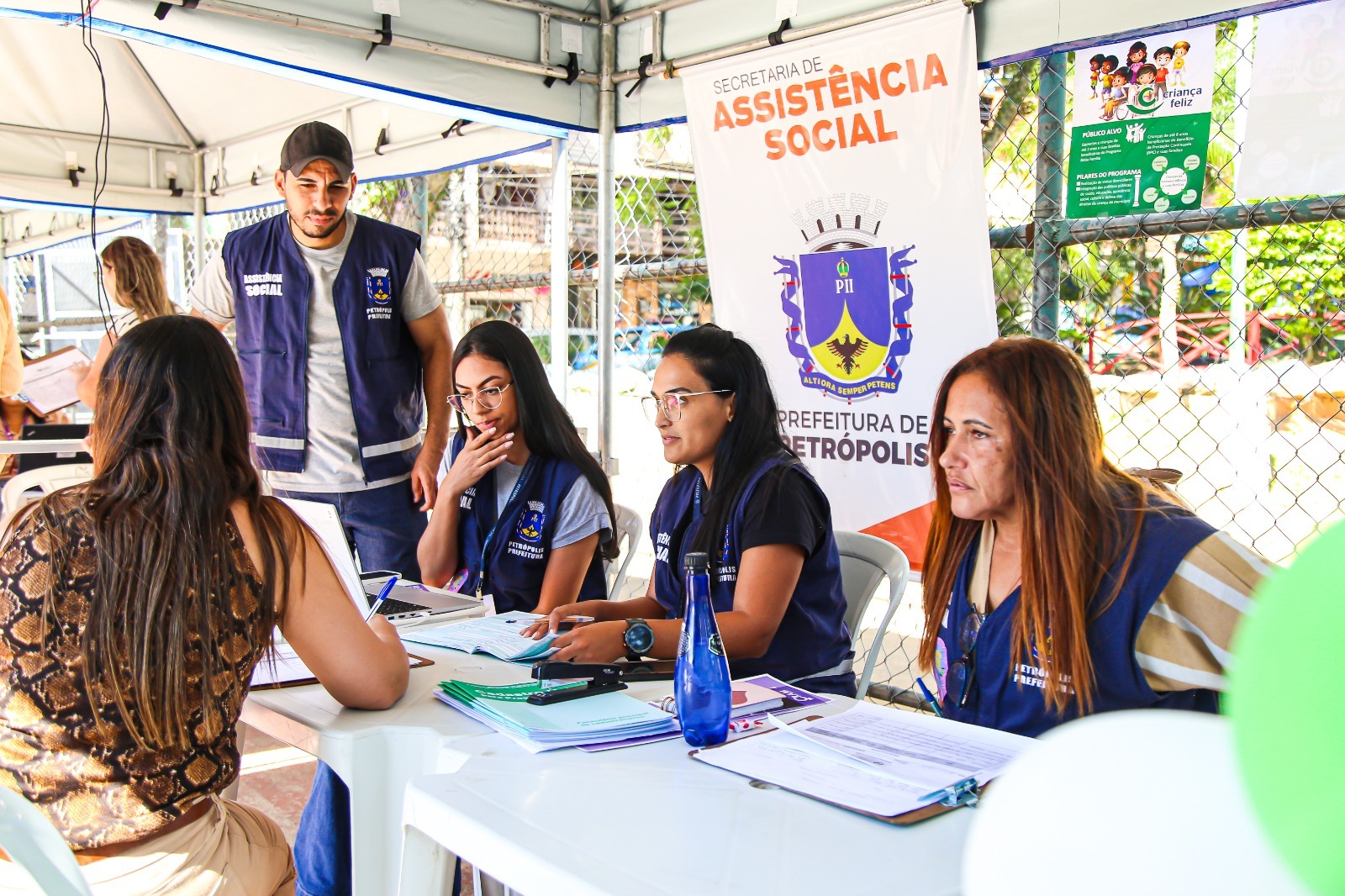 Assistência Social: programa Criança Feliz (atividades recreativas, como desenho e pula-pula), informações sobre CadÚnico