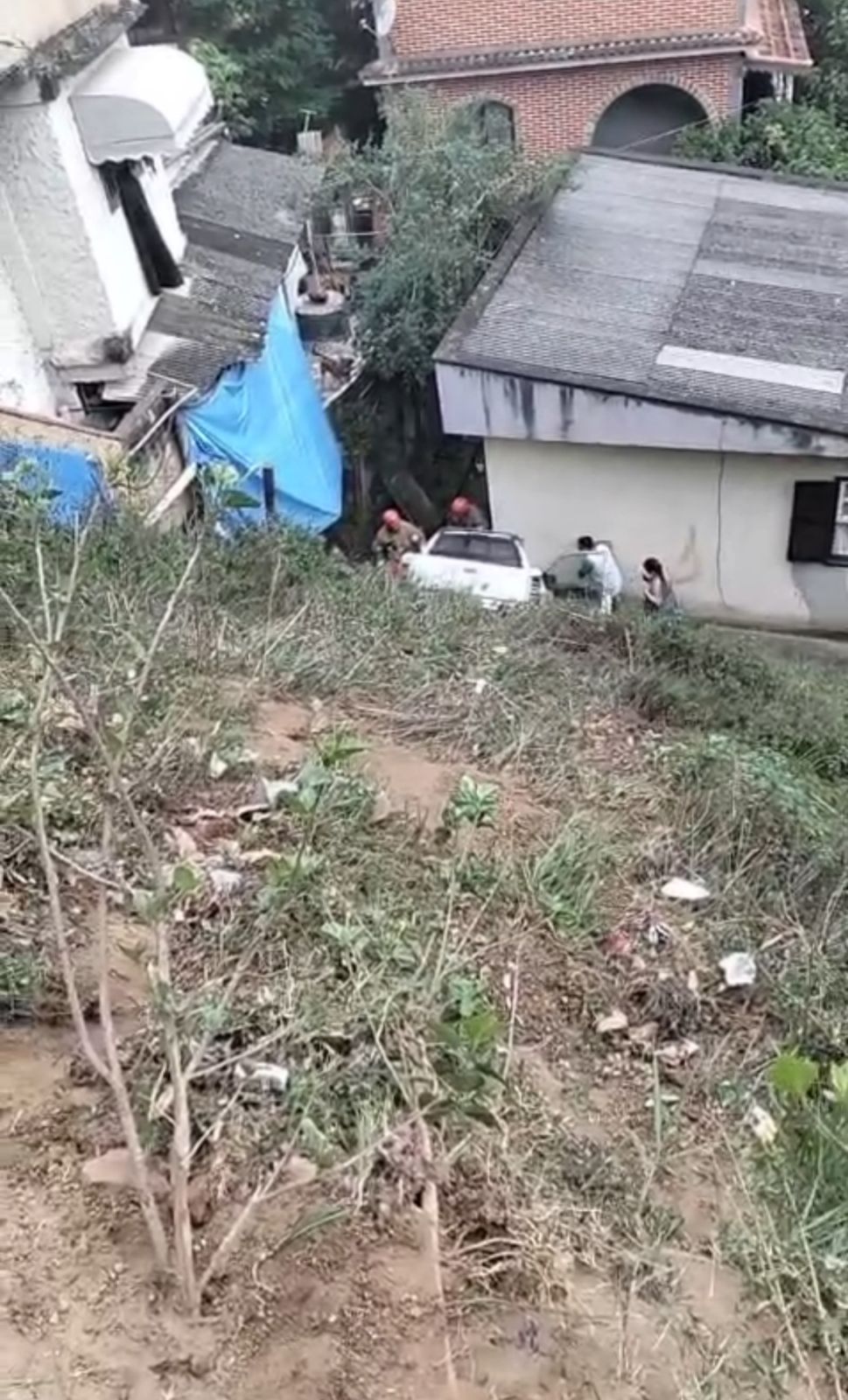 Um carro caiu de uma ribanceira e atingiu uma casa na manhã deste sábado (18), na Rua Vicenzo Rivetti, no bairro Carangola, em Petrópolis.