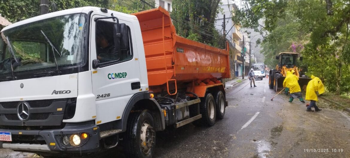 Equipes da Defesa Civil, da Comdep e da CPTrans estão desde a manhã de domingo (19/10) atendendo as ocorrências registradas pela chuva do fim de semana.
