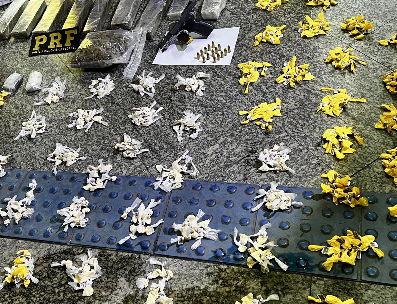 Na noite desta terça-feira (21), a Polícia Rodoviária Federal (PRF) em ação conjunta com a Polícia Militar, apreendeu uma pistola 9mm, seis quilos de maconha e um quilo de cocaína na BR-116. O material seria entregue no bairro Caxangá em Teresópolis.