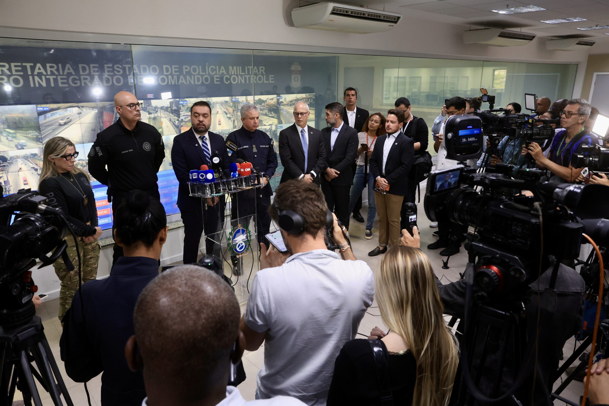 – Estamos atuando com força máxima e de forma integrada para deixar claro que quem exerce o poder é o Estado. Os verdadeiros donos desses territórios são os cidadãos de bem, trabalhadores. Seguiremos firmes na luta contra o crime organizado. O que estamos enfrentando não é mais crime comum, é narcoterrorismo. Os criminosos estão usando tecnologia de guerra: drones, bombas e armamentos pesados. Mas o Estado está preparado – ressaltou o governador Cláudio Castro, durante entrevista coletiva realizada nesta manhã, no Centro Integrado de Comando e Controle (CICC).