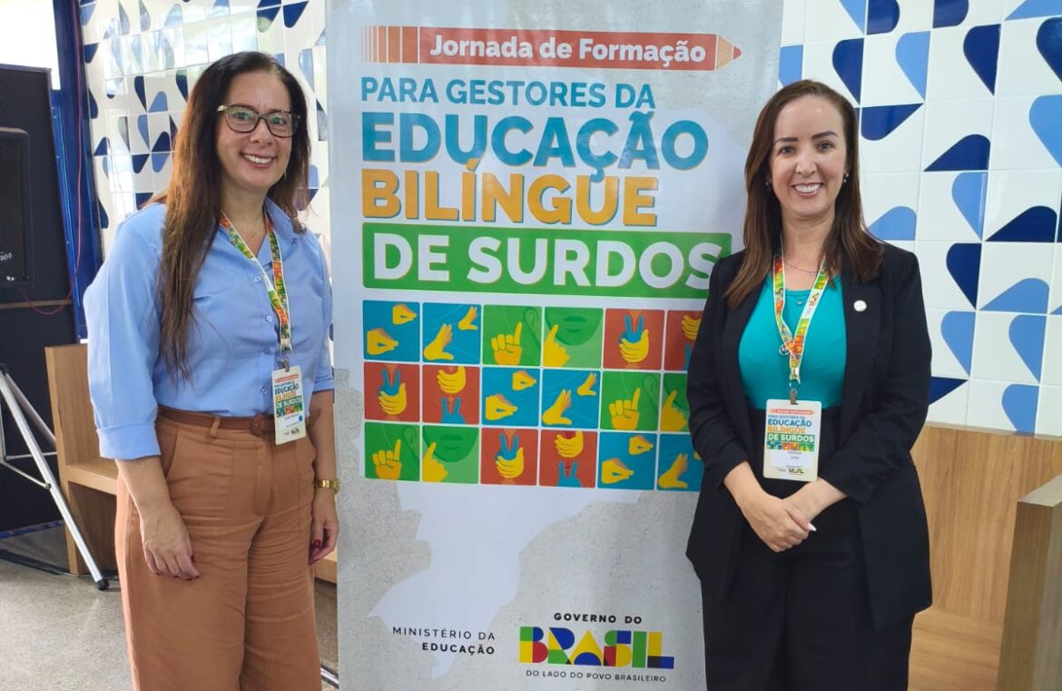 Diretoras da rede municipal participaram da Jornada de Formação para Gestores da Educação Bilíngue de Surdos, promovida pelo Ministério da Educação (MEC) em Brasília. O encontro aconteceu nos dias 29 e 30 desse mês e reuniu 120 gestores e diretores escolares de todo o país. O objetivo foi fortalecer políticas e práticas voltadas ao ensino bilíngue de surdos nas redes públicas de ensino.