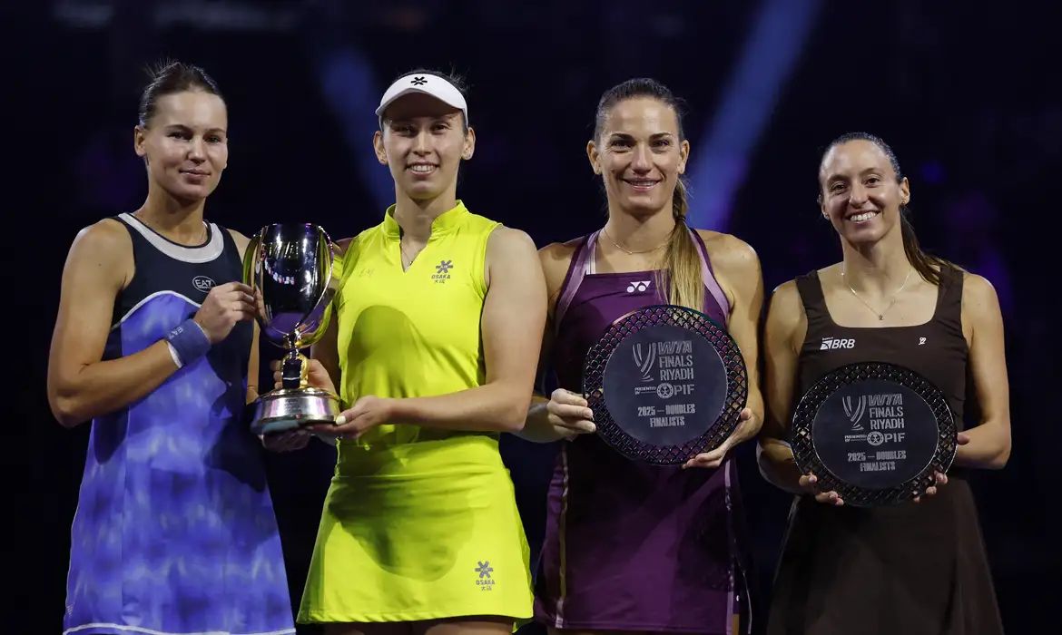 A melhor colocação de uma atleta brasileira em um torneio WTA Finals na história já está definida. Neste sábado (8), a parceria formada por Luisa Stefani e a húngara Timea Babos acabou derrotada por 2 sets a 0, com parciais de 7/6 (4) e 6/1, pela dupla formada pela belga Elise Mertens e pela russa Veronika Kudermetova, na decisão da competição em Riad, na Arábia Saudita.