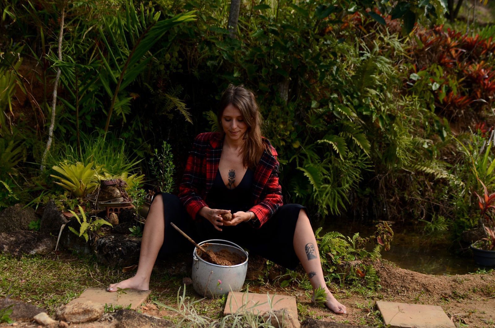 “A busca por técnicas de queima em contato direto com o fogo me levou a referências de 30 mil anos atrás, como a Vênus de Dolní Věstonice, pertencente à cultura gravetiana do Paleolítico. Minha pesquisa revelou que não se tratava de uma peça isolada, mas de cerca de 250 estatuetas representando figuras femininas encontradas em sítios ao longo da Eurásia”, explica a artista.