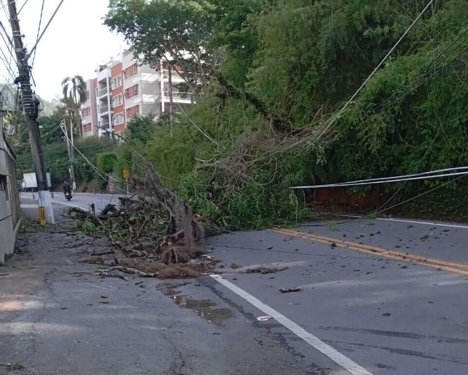 O incidente foi registrado na noite de terça-feira (2), mas o trânsito segue impedido na manhã desta quarta-feira (3). Equipes da CPTrans e da concessionária de energia atuam no local para a retirada da árvore e liberação da via.