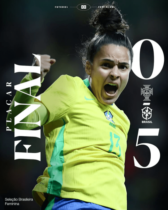 O último retrato da seleção feminina no ano de 2025 não poderia ter sido mais bonito. Jogando no Estádio Municipal de Aveiro, nesta terça-feira (2), o Brasil derrotou Portugal pelo placar de 5 a 0. Os gols da equipe comandada pelo técnico Arthur Elias foram marcados por Gabi Zanotti, Ludmila, Dudinha, Isabela e Bia Zaneratto.