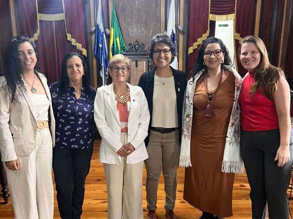 Durante a reunião, estiveram presentes a vereadora Profª Lívia e sua equipe, Thais Justen — que coordenou a elaboração do projeto municipal aprovado no edital —, além das representantes do Ministério das Mulheres: Rosane Silva, Secretária Nacional de Autonomia Econômica e Política de Cuidados, e Lorena Abrahão, Coordenadora de Formação e Articulação.