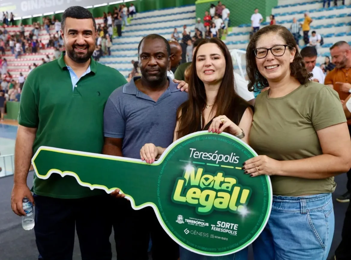 Neste domingo, 14, a Prefeitura de Teresópolis realizou a entrega de 81 prêmios sorteados aos ganhadores do programa ‘Teresópolis Nota Legal’, em uma cerimônia marcada por entusiasmo e emoção. O prêmio mais esperado do dia era o apartamento novo de 6 cômodos, em um condomínio residencial na Cascata do Imbuí.