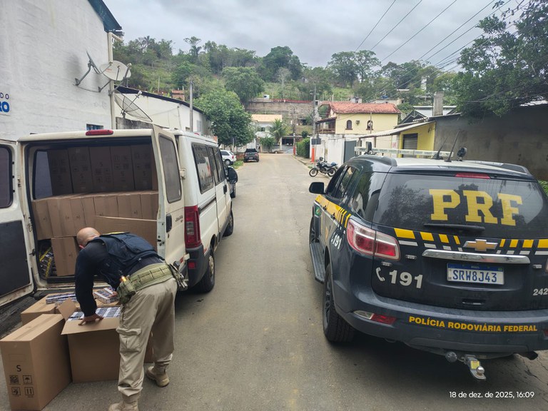 Por volta das 15h, equipes do Grupo de Fiscalização de Trânsito da PRF (GFT/5) faziam uma fiscalização na altura do km 45 quando deram ordem de parada ao condutor de uma van. O motorista não soube dizer qual o destino preciso da carga e apresentou notas fiscais divergentes. Elas apresentavam informações de entrega para Belém/PA, mas o condutor relatou que seguia para Juiz de Fora/MG.
