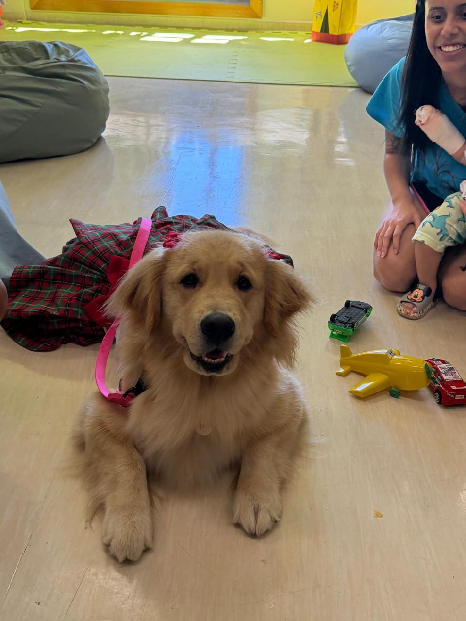 As crianças internadas na pediatria do Hospital Alcides Carneiro (HAC) tiveram uma surpresa nesta terça-feira (23/12). Elas receberam a visita da cadela Pipa, da raça golden retriever, que atua como coterapeuta para ajudar na recuperação das crianças. Pipa faz parte do Projeto TEAcolhe UERJ uma iniciativa multidisciplinar da Universidade do Estado do Rio de Janeiro (UERJ) que realiza Serviços Assistidos por Animais (SAA) para acolher, promover bem-estar e inclusão.