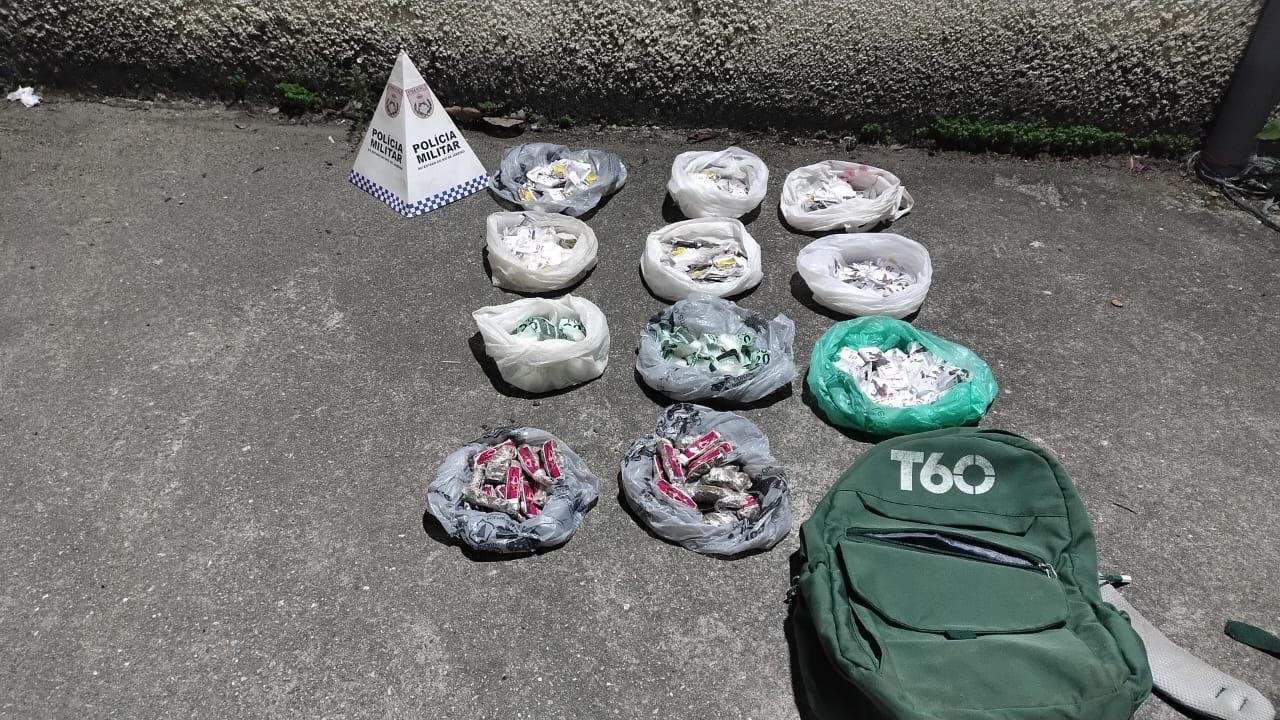 A ação ocorreu após informações sobre a prática de tráfico de entorpecentes na localidade. Durante a aproximação da equipe, dois indivíduos em atitude suspeita fugiram e não foram localizados. Em varredura no local, os policiais encontraram uma mochila contendo grande quantidade de drogas.