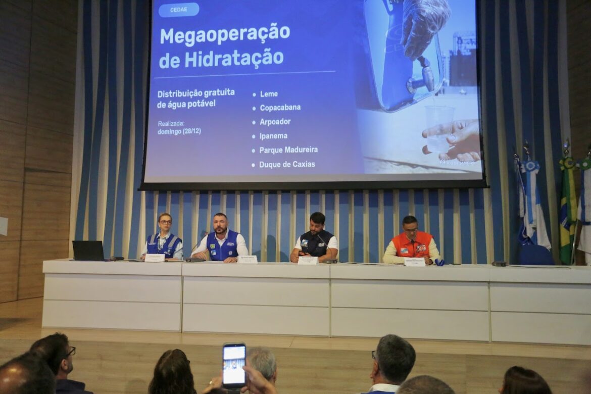 O Governo do Estado apresentou, nesta segunda-feira (29/12), o balanço do fim de semana da força-tarefa para atenuar os efeitos do calor extremo no Rio de Janeiro. O conjunto de medidas foi determinado pelo governador para minimizar os riscos à saúde da população. A coletiva de imprensa, realizada na sede da Cedae, teve a participação dos representantes das secretarias de Defesa Civil/ Corpo de Bombeiros, Saúde, Ambiente e da Cedae.