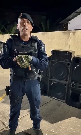 Em outra ação, na Comunidade do Neylor, um evento irregular foi encerrado e seis caixas de som de grande porte, amplificadores e fiação foram apreendidos e encaminhados à 105ª DP.