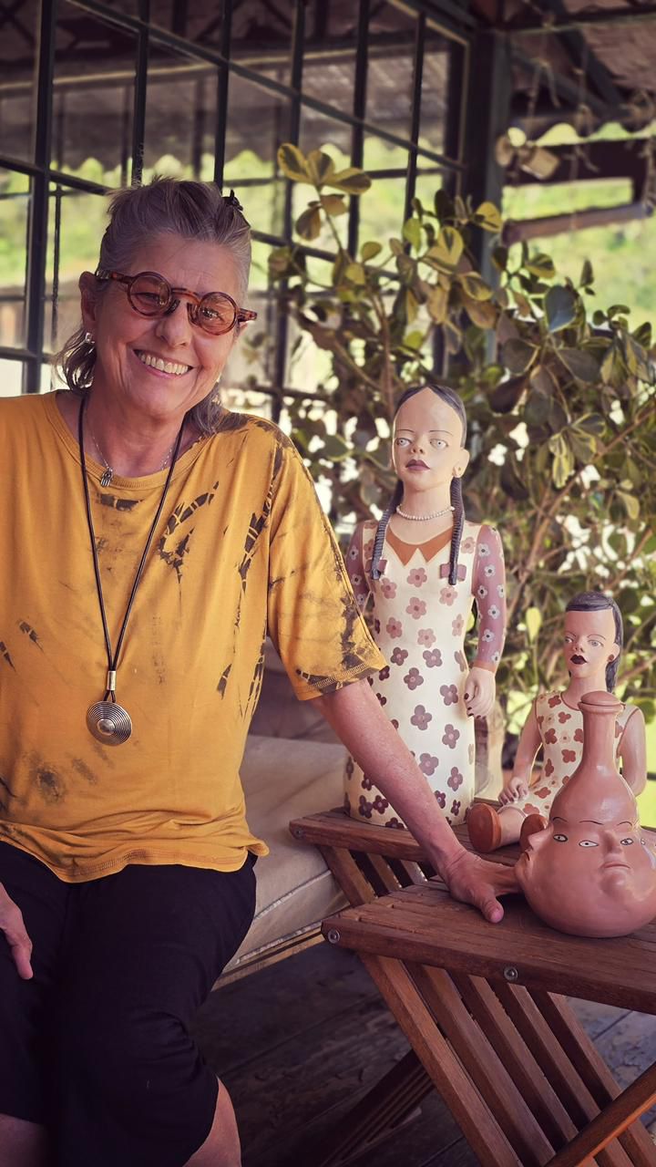 Moradora do Vale das Videiras, em Petrópolis, há 12 anos, Maria Sonia Pinho é carioca e iniciou sua carreira a partir de pesquisas sobre materiais e saberes tradicionais após uma temporada em Ouro Preto (MG). Vinda do universo da moda, passou a questionar seus valores e direcionou sua atuação para a arte popular e os fazeres tradicionais brasileiros. Ao longo dos anos, percorreu diferentes regiões do país em projetos ligados à arte popular, com destaque para o Vale do Jequitinhonha (MG) e Juazeiro do Norte (CE). Há mais de uma década vive no Vale das Videiras, onde desenvolve trabalhos relacionados à cultura e à relação com a natureza.