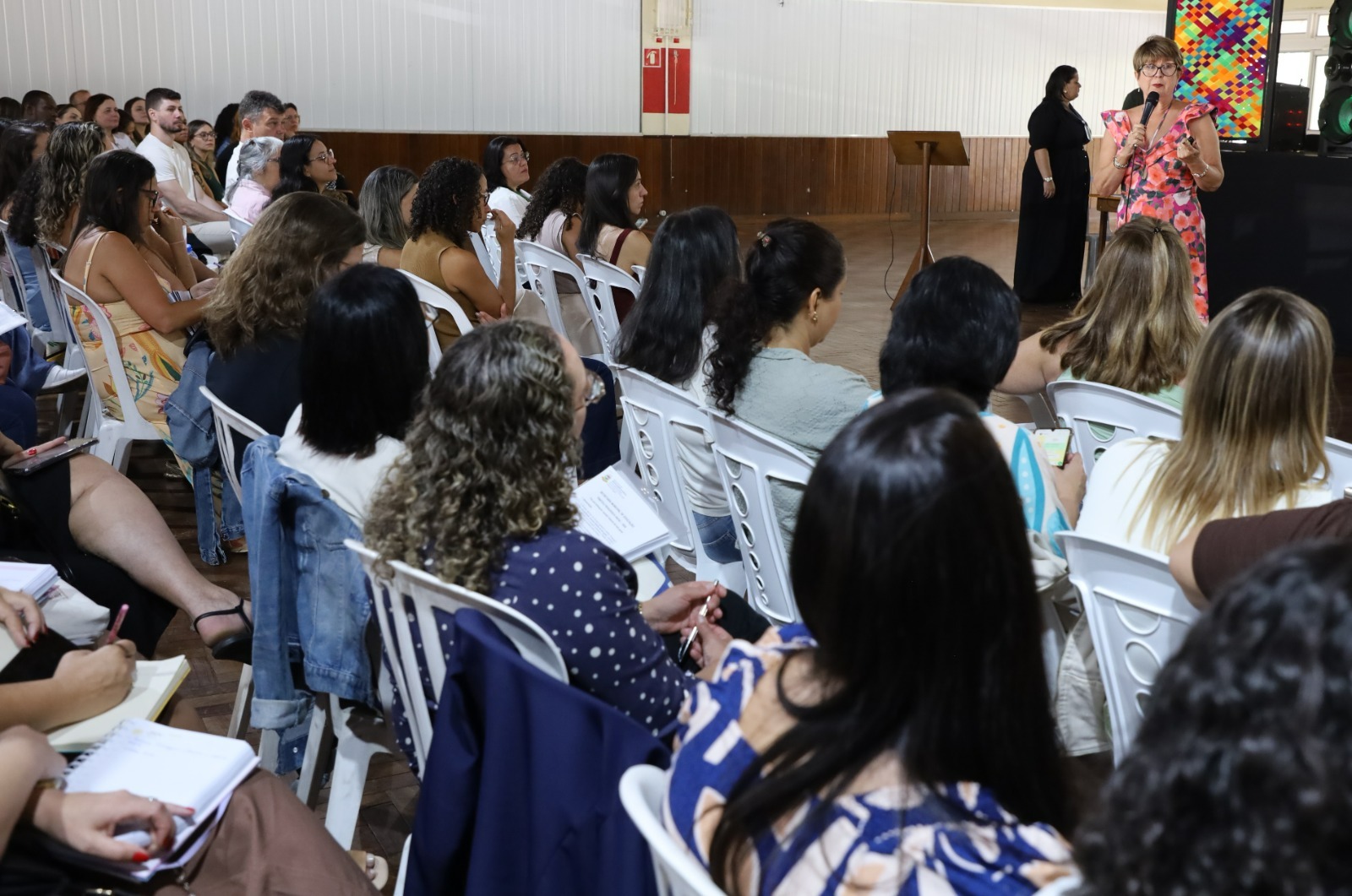O evento contou com a participação da professora Kátia Smole, referência nacional na área educacional, a diretora-executiva do Instituto Reúna, convidou o público a olhar para a ‘Coerência Pedagógica Sistêmica’ como um fio potente e indispensável, capaz de costurar os diferentes elemento que formam a trama pedagógica – currículo, práticas, avaliações, relações e propósitos. Um fio que dá sentido ao trabalho coletivo e garante que o ensino e a aprendizagem caminhem juntos, com consistência, significado e resultados, fortalecendo o tecido da educação que construímos todos os dias.