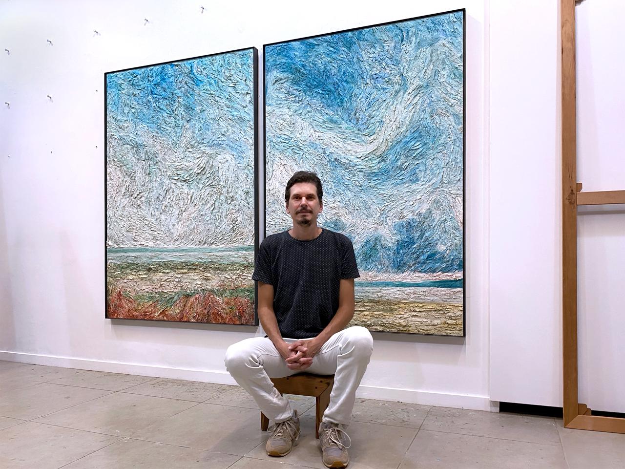 “Esse momento é quase de uma escavação. No lugar dos pincéis, utilizei ferramentas como martelo, lâminas, formão e fogo. É como se eu buscasse reencontrar a figura que estava ali desde o início. A resina pintada se parte em cacos, peles, abrindo frestas e buracos que deixam a camada inicial voltar à luz”, revelou o artista.