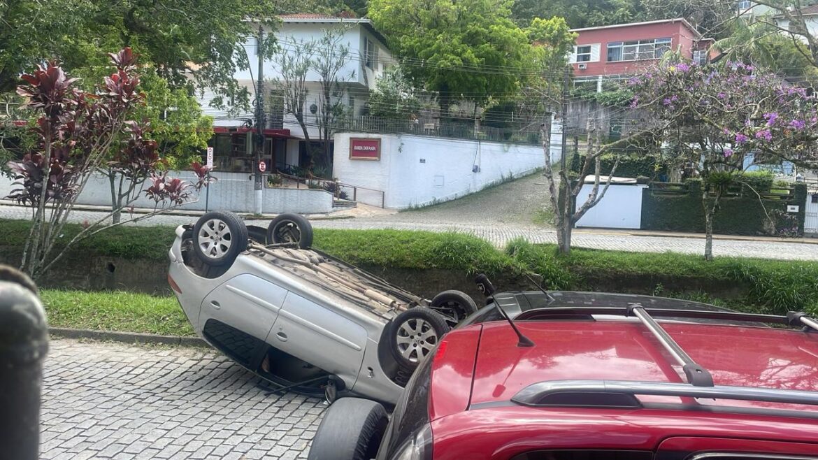 Um carro capotou na Avenida Piabanha no Centro de Petrópolis no início da tarde deste domingo (01). De acordo com o relato de testemunhas o motorista, é único passageiro do veículo, não ficou ferido no acidente.