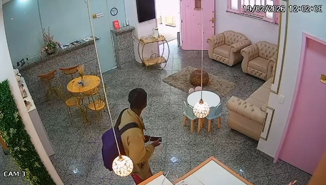 De imediato, as guarnições realizaram buscas nas imediações e localizaram um suspeito com as mesmas características observadas nas imagens do estabelecimento. Durante a abordagem, foi encontrado um aparelho celular (iPhone SE) escondido em suas vestes.