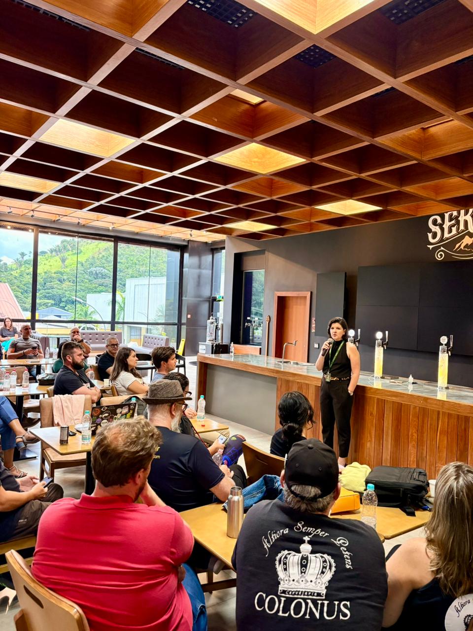 A coordenadora executiva da Rota Cervejeira da Serra, Ana Cláudia Pampillón, reforçou a relevância do diálogo institucional. “Eu acho que é muito importante pra gente estreitar esse relacionamento para que a gente possa trabalhar e reverberar mais sobre o turismo cervejeiro na nossa região”, pontuou.