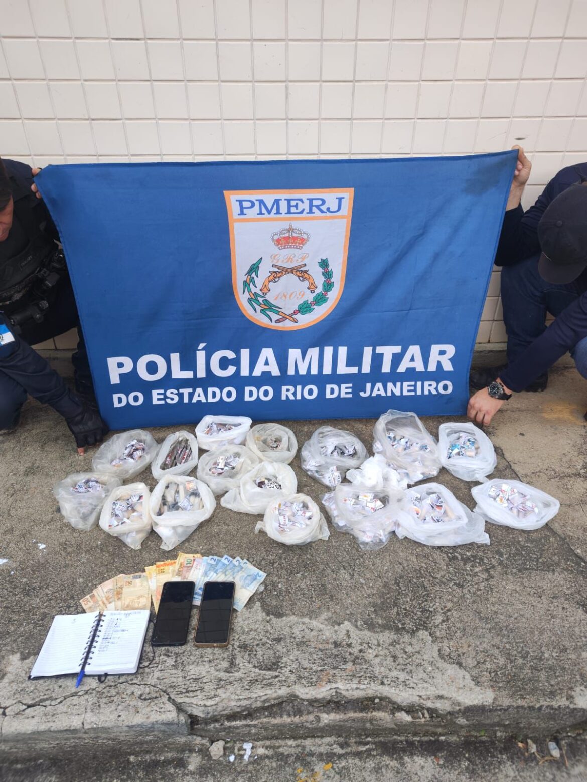 Durante a operação, as equipes abordaram um indivíduo oriundo da Zona Oeste do Rio de Janeiro, suspeito de atuar no fortalecimento do tráfico na localidade. Com ele foram encontrados 244 cápsulas de cocaína, 136 pedras de crack, 57 tabletes de maconha, dois aparelhos celulares, um caderno com anotações do tráfico e R$ 341 em espécie.