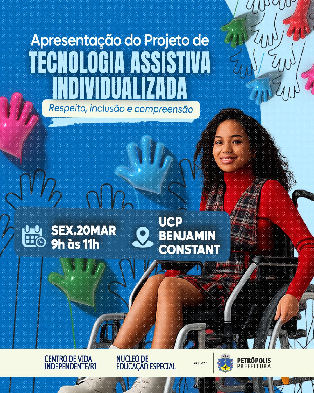 A Prefeitura apresenta na sexta-feira (20/03) o projeto Tecnologia Assistiva Individualizada para gestores das unidades escolares da rede municipal e comunidade escolar. O evento será realizado das 9h às 11h, na sede da Universidade Católica de Petrópolis (UCP), na Rua Benjamin Constant. O objetivo é promover o acesso à informação sobre recursos disponíveis para a promoção do atendimento para as pessoas com deficiência no âmbito educacional e social.