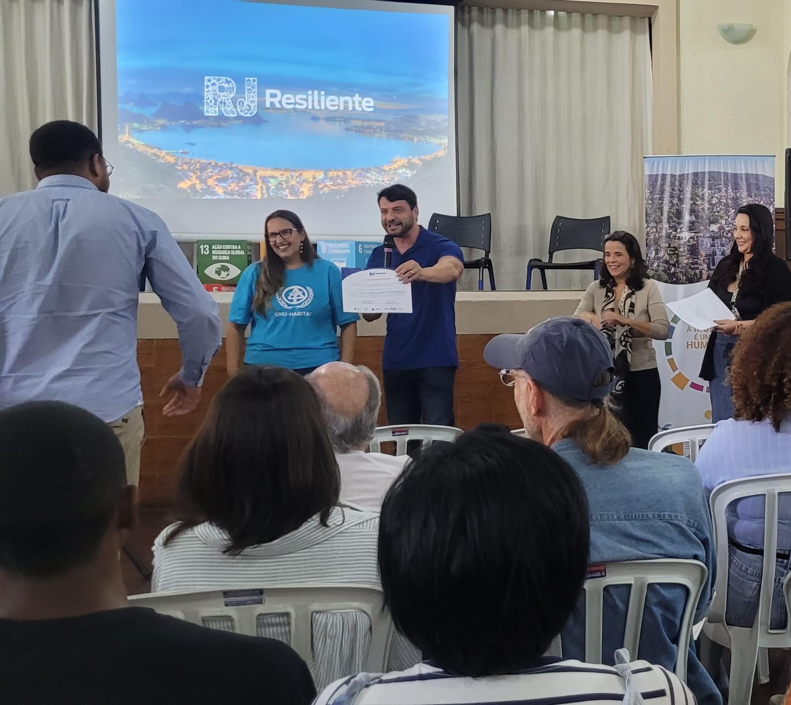 - Nós agradecemos muito a oportunidade de participar deste projeto. A Seas nos apresentou o desafio de trabalhar o tema da resiliência em Petrópolis, que é uma cidade com características muito peculiares e levar às comunidades um tema tão sensível e duro pro município e pras pessoas que moram aqui. A ONU Habitat abraçou a ideia e hoje estamos aqui para a entrega destes certificados – destaca a representante da ONU, Rayne Ferretti.