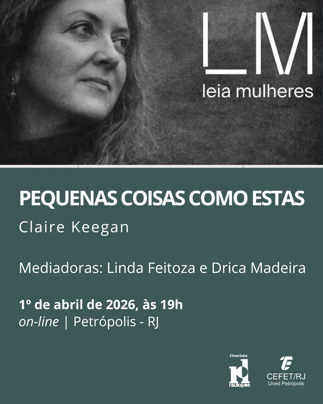 O evento on-line, com mediação de Linda Feitoza e Drica Madeira, acontecerá no dia 1º de abril a partir das 19h pelo Google Meet. Os interessados em participar devem solicitar o link do evento por meio das redes sociais – Leia Mulheres Petrópolis no Instagram e grupo Leia Mulheres Petrópolis-RJ no Facebook.